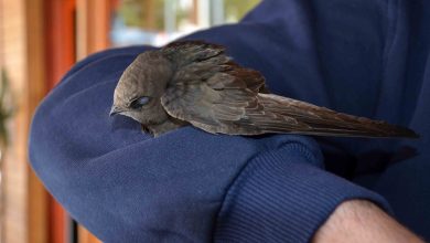 Serik ilçesinde girdiği iş yerindeki Mevlüt Aslan'ın koluna yapışıp bırakmayan ebabil, veteriner müdahalesiyle ayrılıp, Tabiat Müdafaa gruplarına teslim edildi.